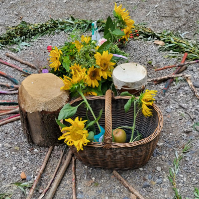 12.30 Abschlußkreis am Bauwagen mit Lied und Sprechen über das Erlebte, dort findet auch ab 12.45 Uhr das Abholen durch die Eltern statt.