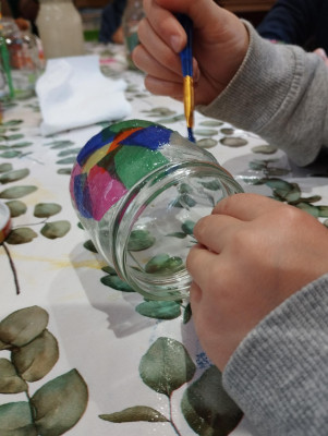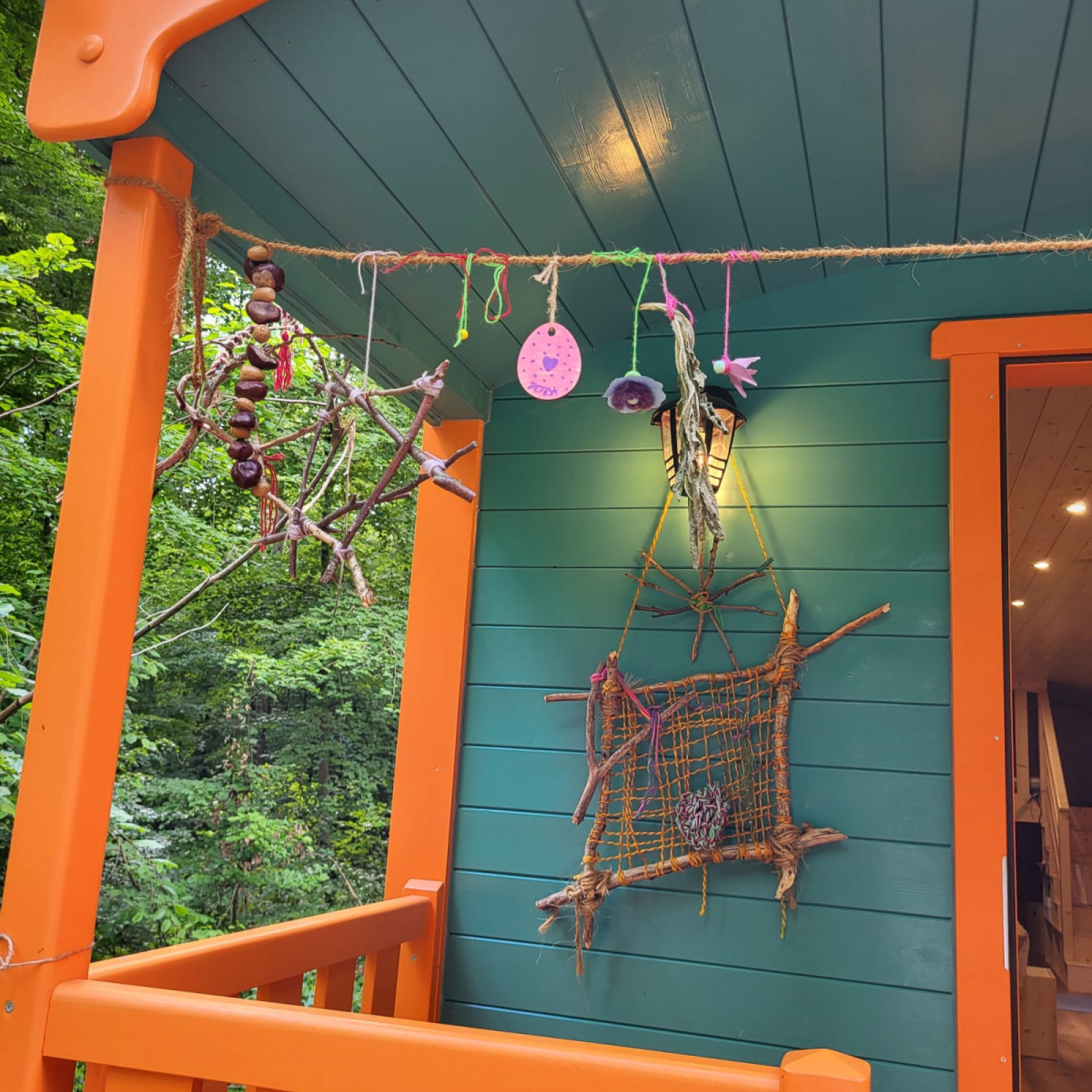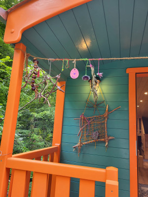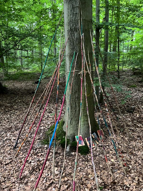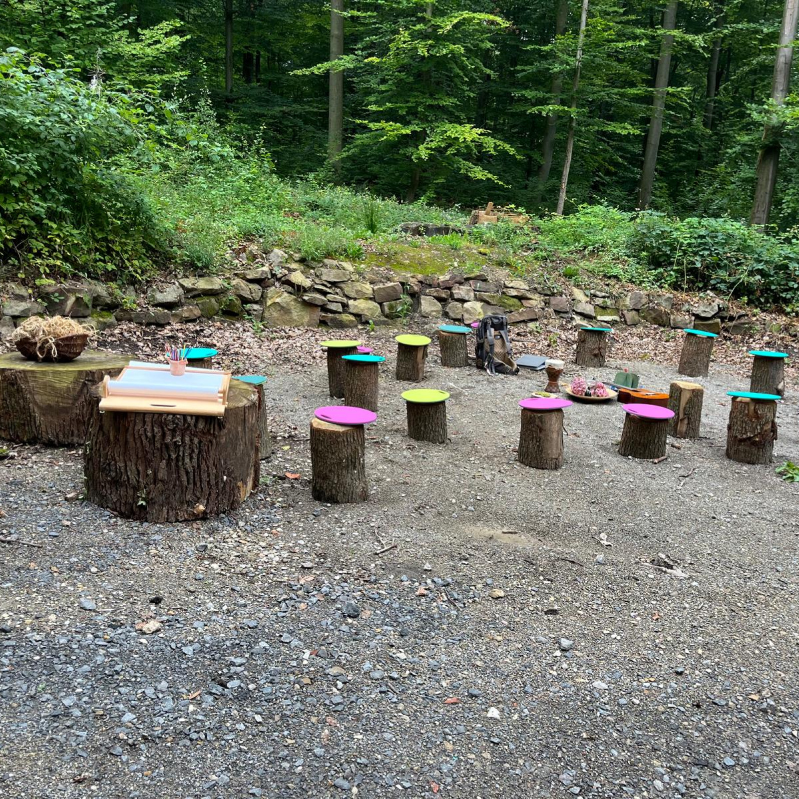 danach: Angebote wie Basteln, Werken, Kreisspiele und Freispiel, kleine Wanderungen auf den umliegenden Waldpfaden mit Beobachtungen in der Natur, dabei werden entstehende Spielideen der Kinder aufgegriffen.